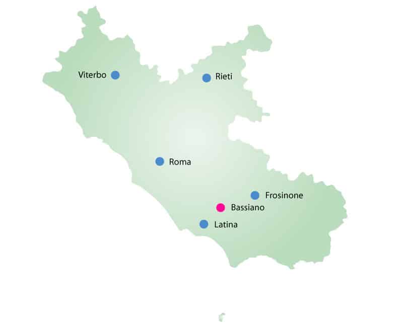Le colline su cui sorge Bassiano, sui Monti Lepini, rappresentano un luogo ideale per la stagionatura di questo prosciutto. Numerosi sono infatti gli aspetti pedoclimatici che ne caratterizzano la produzione: il giusto grado di umidità necessario per ottenere un’equilibrata stagionatura del prodotto, l’altitudine e la presenza dei monti che riparano il paese dai venti di scirocco e tramontana.