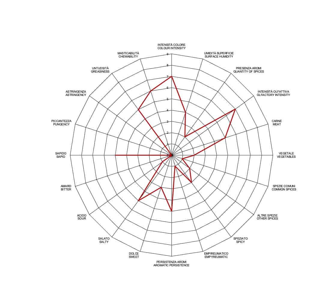 La produzione tradizionale parte da un’accurata selezione dei maiali, provenienti esclusivamente da allevamenti italiani. Le cosce vengono prima rifilate a punta di coltello, quindi conciate con una tipica salsa fatta di vino bianco ed aglio. Segue la salatura “a secco” con cui i prosciutti sono aromatizzati manualmente. Le forme sono poi sottoposte ad una doppia sugnatura che permette di sigillare la parte scoperta della polpa attraverso un impasto di sugna, sale, peperoncino e farina di riso. Seguono una leggera affumicatura con legno di faggio e la lenta stagionatura.
