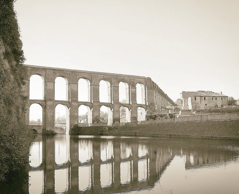L’ingresso alla cittadina di Nepi è segnato dalla mole di un imponente acquedotto, realizzato con un sistema di grandi file di arcate su due ordini, che si erge grandioso per 285 metri fino ad appoggiarsi alle mura farnesiane. Nonostante l’aspetto richiami un’epoca antica, l’acquedotto fu progettato intorno alla metà del 1500 e costruito solo nel 1700. L’intento era naturalmente quello di portare l’acqua al centro abitato di Nepi. La maggior parte del tracciato dell’acquedotto correva sotterranea, ma in prossimità delle mura della cittadina il dislivello da superare era molto ampio. Per trovare una soluzione fu chiamato un team di architetti, tra cui lo stesso Giacomo Barozzi, detto il Vignola, che progettò l’opera ingegneristica. I lavori tuttavia furono portati a termine solo nel 1727 dall’architetto Filippo Barigioni, per volere del Cardinale Giuseppe Renato Imperiali. La bellezza dell’opera ha attirato l’interesse di vari artisti nel corso dei secoli. Nel 1828, durante il suo viaggio in Italia, il pittore inglese William Turner ha immortalato le arcate dell’acquedotto nei suoi schizzi. Il maestro Mario Monicelli ne fece lo sfondo delle prime scene del suo capolavoro L'armata Brancaleone e lo stesso acquedotto compare in alcune scene del film Per grazia ricevuta con Nino Manfredi, girato nel 1971. Ancora oggi la struttura perfettamente funzionante alimenta le monumentali fontane cittadine e si fa ammirare dal visitatore moderno.