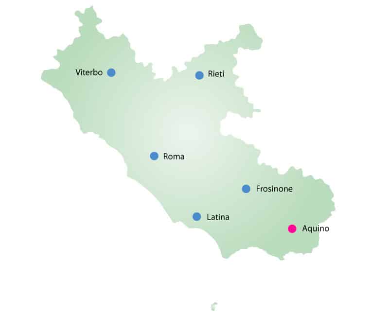 Nella bassa Valle del fiume Liri sorge Aquino, città natale del poeta satirico Giovenale e di San Tommaso. Dell’antica Aquinum, prima città volsca, poi importante colonia romana, si conservano maestose testimonianze racchiuse sia nel centro archeologico, distante una ventina di minuti dal borgo attuale, sia nell’abitato.