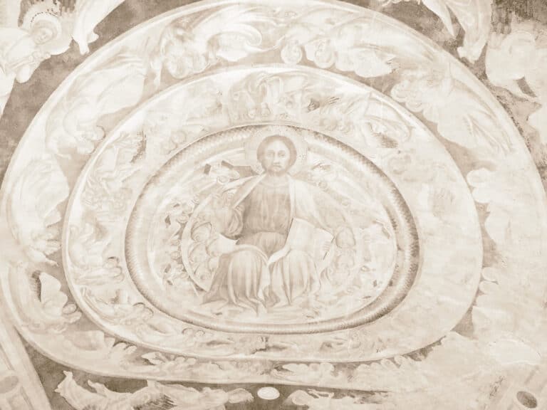 La volta reca una spettacolare visione del Cristo in maestà, circondato dai cori degli angeli. All’esterno dei cerchi si notano gli angeli che portano in cielo le anime dei risorti, come segno di conforto nel contesto ospedaliero dell’Annunziata, nel quale l’Oratorio funzionava come cappella funeraria. Sulla parete di fondo, sopra l’altare, compare l’episodio biblico dell’Annunciazione dell’Angelo a Maria, con le architetture del palazzo che richiamano le geometrie della Gerusalemme celeste.