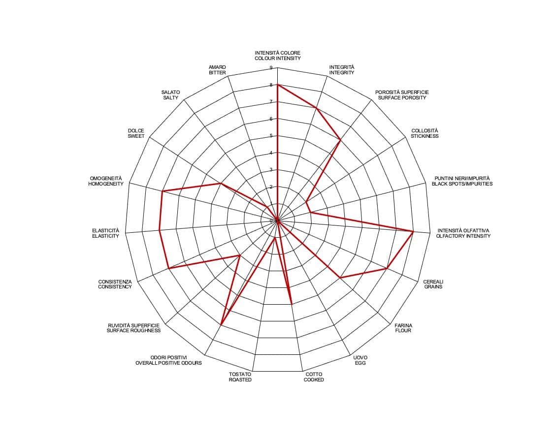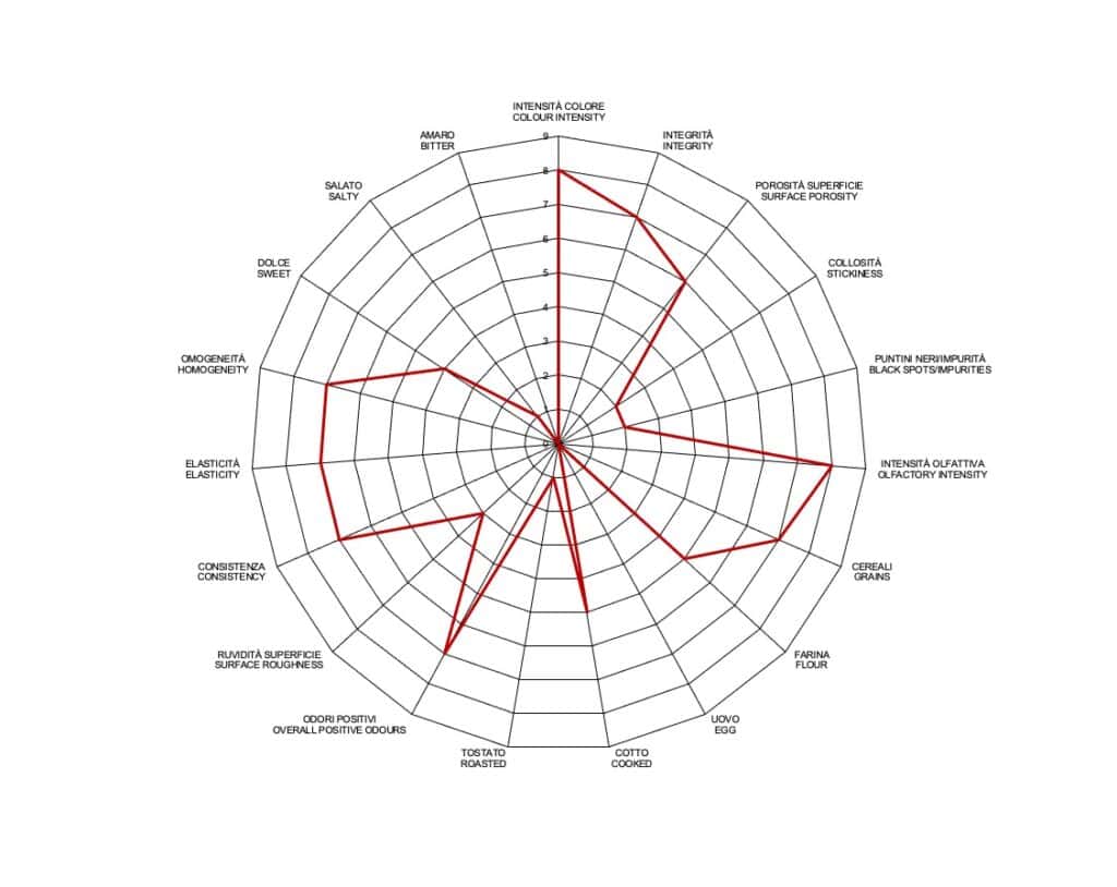 I Sagnozzi hanno un colore chiaro omogeneo e si contraddistinguono per l'alta integrità dopo la cottura. L'elevata intensità olfattiva si caratterizza per le note di cereali e farina abbinate ad un leggero sentore tostato. Al gusto si presenta armonicamente dolce con una leggera nota salata. Buona la consistenza e l'elasticità.