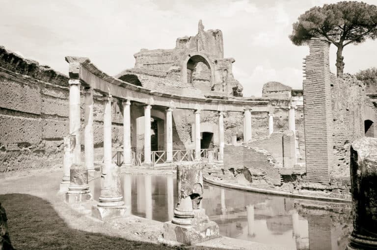 Nel territorio di Tivoli termina il bacino superiore del fiume Aniene dando origine a spettacolari cascate e ad una campagna verdeggiante. Proprio la bellezza di questi luoghi dovette attrarre l’imperatore Adriano che tra il 118 ed il 128 d.C. volle costruire, poco lontano dalla città, il complesso di Villa Adriana. La Villa conserva su ben 16 ettari una serie di edifici monumentali ispirati alla cultura greca ed ellenistica. L’area archeologica conserva oggi il Pecile, monumentale quadriportico destinato alle passeggiate, il complesso delle Piccole e Grandi Terme, il Canopo, grande bacino rettangolare adorno di statue, il Palazzo imperiale ed il Teatro marittimo, isolotto artificiale usato dall’imperatore per isolarsi dal resto del mondo. Molti secoli più tardi lo stesso scenario dovette affascinare anche il cardinale Ippolito d’Este, governatore della città nel 1550, che fece progettare da Pirro Ligorio la sua Villa e convogliare le acque dell’Aniene per alimentare le splendide fontane. Ciò che rende la villa monumentale sono proprio i suoi giardini all’italiana e i giochi d’acqua. La vicina Villa Gregoriana si deve invece a Papa Gregorio XVI che nel 1832 promosse un’imponente opera di ingegneria idraulica per deviare le acque dell’Aniene, soggette a continue esondazioni. Incanalando le acque del fiume in un doppio traforo diede vita ad una cascata di oltre 120 metri e ad un parco di boschi, sentieri e grotte naturali cui diede il suo nome.