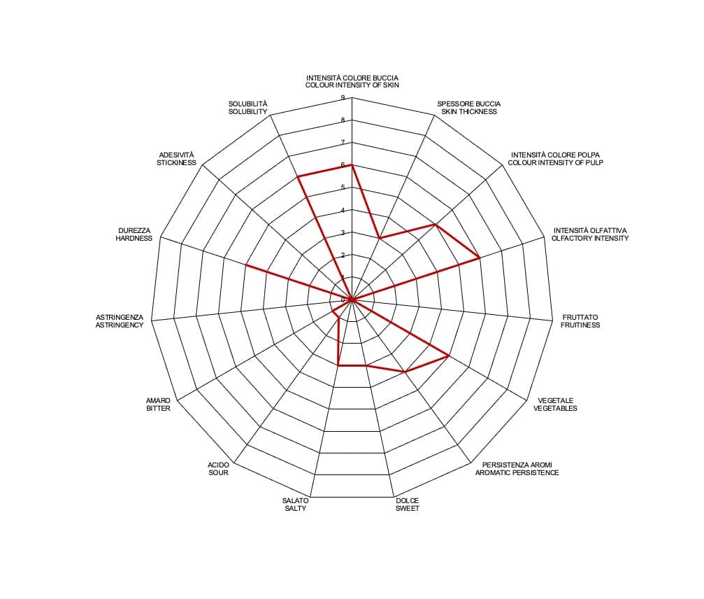 Lo zucchino romanesco con fiore ha un colore verde chiaro di media intensità con screziature bianche. Al taglio presenta la caratteristica forma a stella ed una polpa di colore bianco uniforme. La media intensità olfattiva si caratterizza per le spiccate note vegetali. Al gusto si presenta armonicamente dolce e salato, con una leggera nota acidula e amarognola. Media persistenza aromatica.